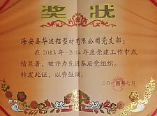 • 先进党支部证书